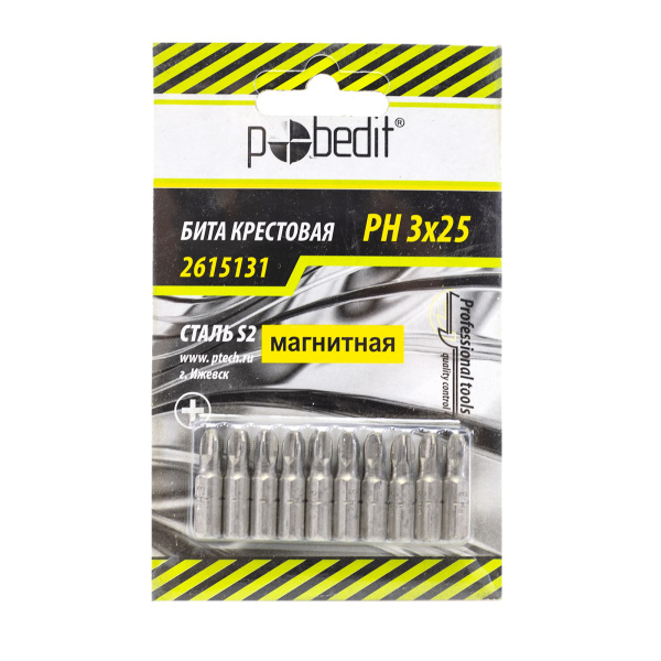 Бита намагниченная. Изготовлена из прочной стали S2. Обеспечивает долгий срок службы инструмента.