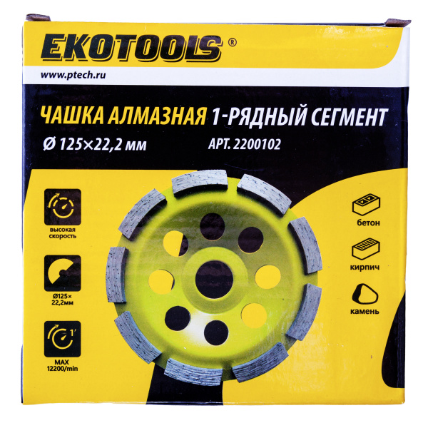 Чашка алмазная 125мм по бетону 1-рядная EKOTOOLS