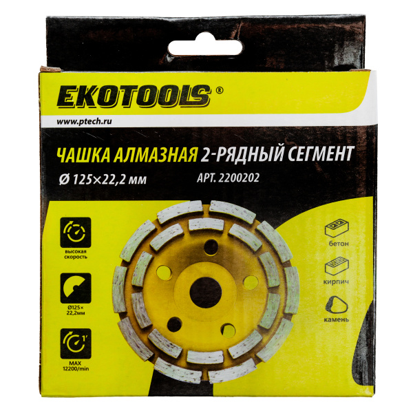 Чашка алмазная 125мм по бетону 2-рядная EKOTOOLS