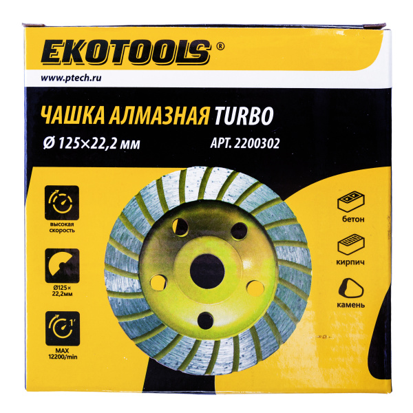 Чашка алмазная 125мм, по бетону, Turbo, EKOTOOLS
