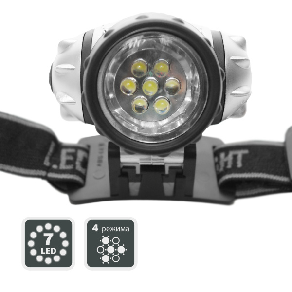 Фонарь налобный светодиодный, 7LED, 3хААА, пластик