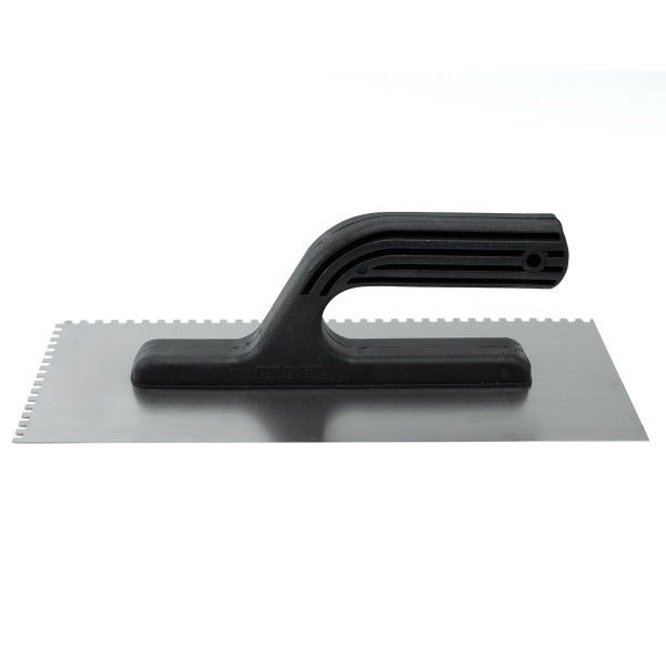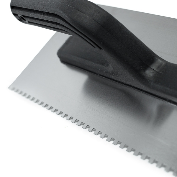 Применяется для нанесения штукатурных смесей и клеевых растворов. Имеет квадратный зуб.