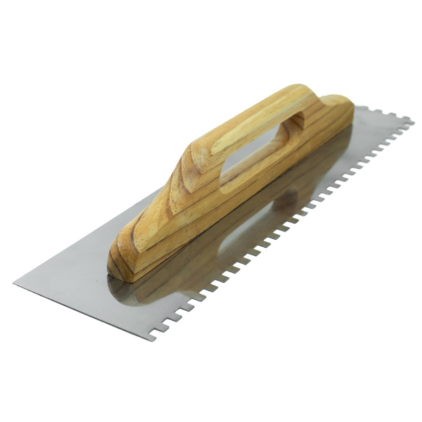 Применяется для нанесения и выравнивания штукатурных смесей и клеевых растворов. Имеет квадратный зуб.