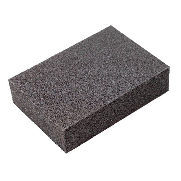 Мягкая губка, высококачественный абразив. Водостойкая. Для обработки неровных труднодоступных поверхностей. Размер 100х70х25 мм