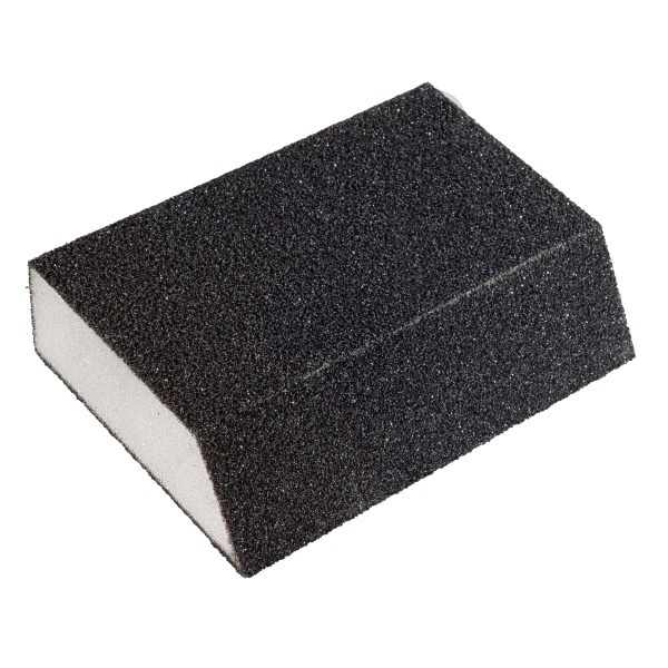 Губка средней жесткости, форма - трапеция, высококачественный абразив. Водостойкая. Для обработки неровных труднодоступных поверхностей. Размер 100х70х55х25 мм
