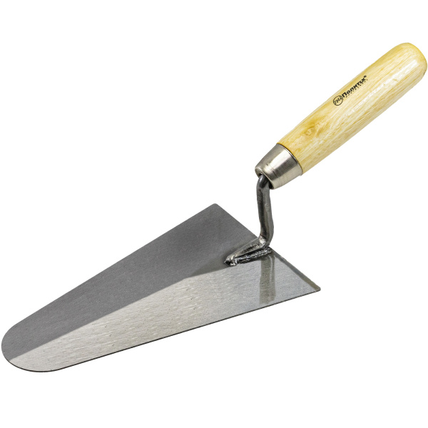 Высокоуглеродистая сталь, деревянная ручка. Предназначена для выравнивания раствора, заполнения вертикальных швов и подрезки раствора, выступающего из швов.