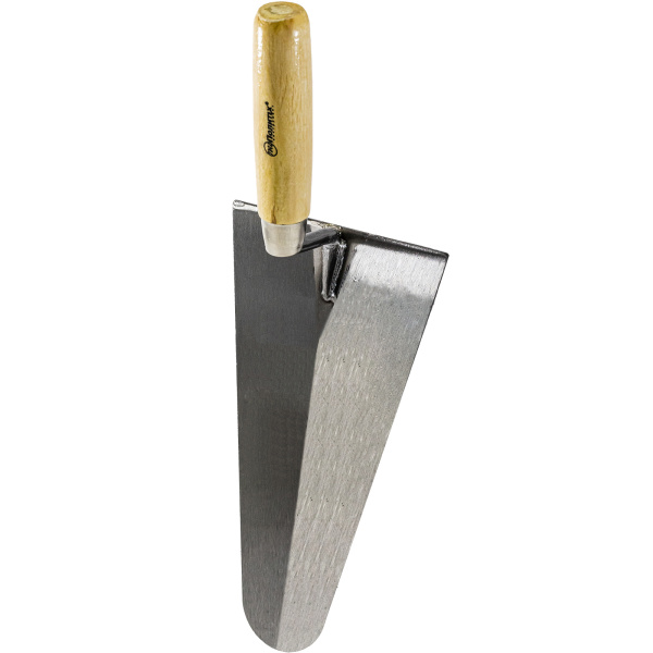 Высокоуглеродистая сталь, деревянная ручка. Предназначена для выравнивания раствора, заполнения вертикальных швов и подрезки раствора, выступающего из швов.