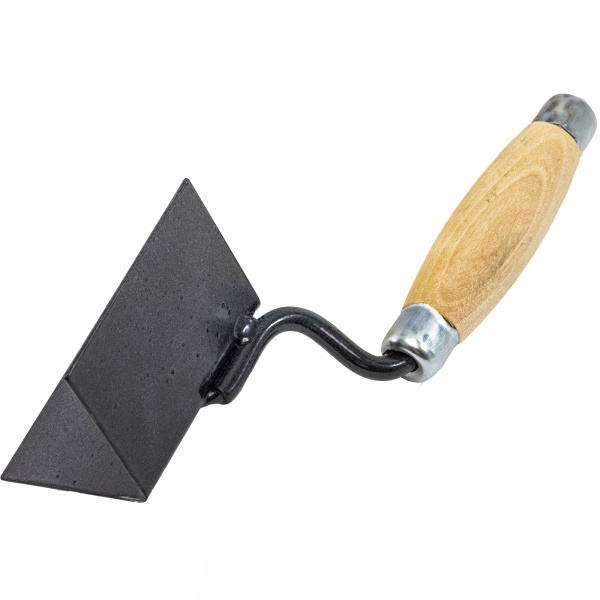 Закаленная сталь, деревянная ручка, металлический отбойник. Предназначена для нанесения штукатурных растворов и формирования внешних углов при проведении штукатурных и отделочных работ.