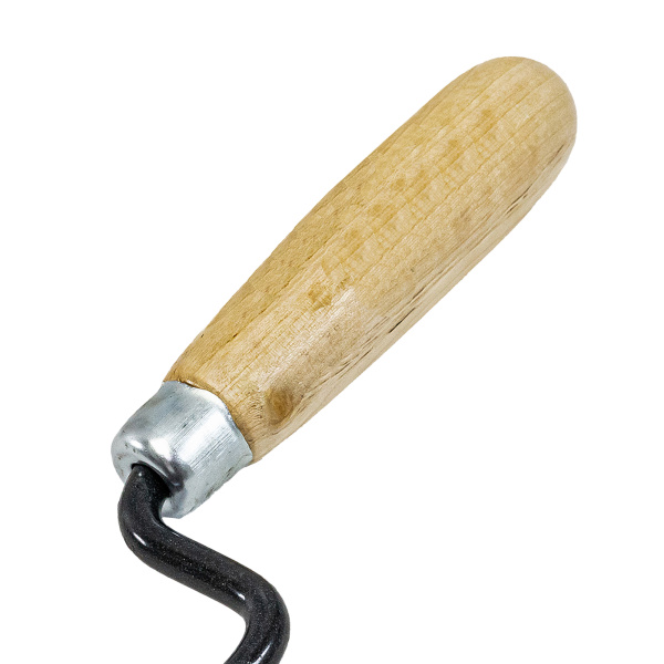 Закаленная сталь, деревянная ручка. Предназначена для выравнивания, укрепления и придания форм внешних швов во время кладки кирпича и камня.