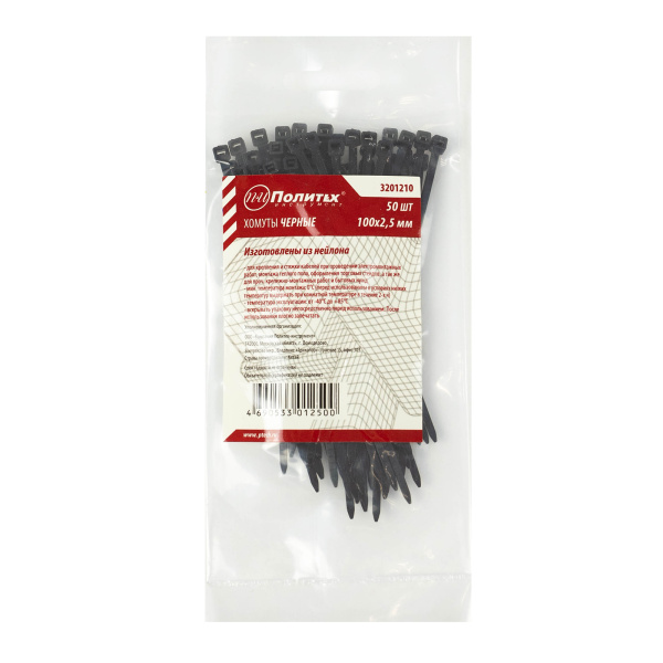 Хомуты нейлоновые черные 100 х 2,5 мм уп.50шт