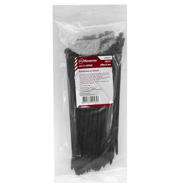 Хомуты нейлоновые черные 200 х 4,8 мм уп.100шт