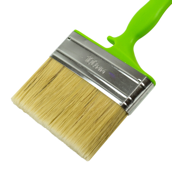 Высококачественная натуральная щетина. Специальный крепеж на банку краски.Клинья и клеевой рецепт фиксирует щетину.