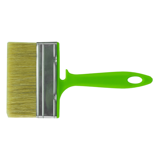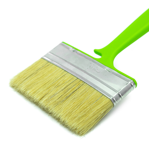 Высококачественная натуральная щетина. Специальный крепеж на банку краски.Клинья и клеевой рецепт фиксирует щетину.