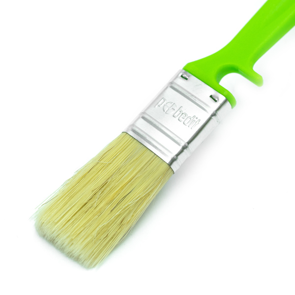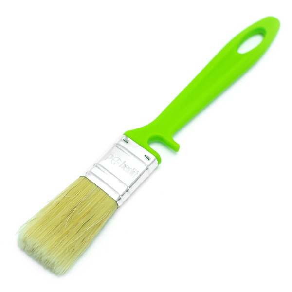 Высококачественная натуральная щетина. Специальный крепеж на банку краски.Клинья и клеевой рецепт фиксирует щетину.