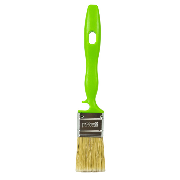 Высококачественная натуральная щетина. Специальный крепеж на банку краски.Клинья и клеевой рецепт фиксирует щетину.