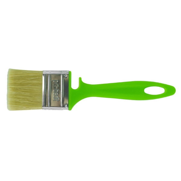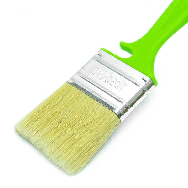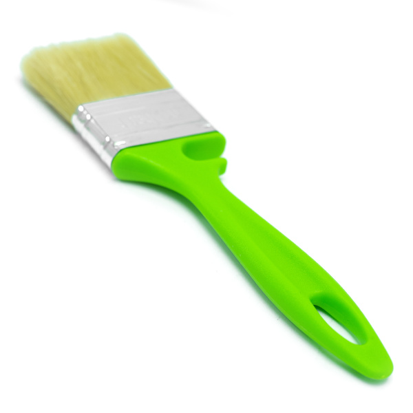 Высококачественная натуральная щетина. Специальный крепеж на банку краски.Клинья и клеевой рецепт фиксирует щетину.