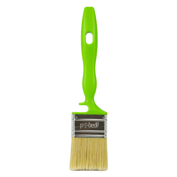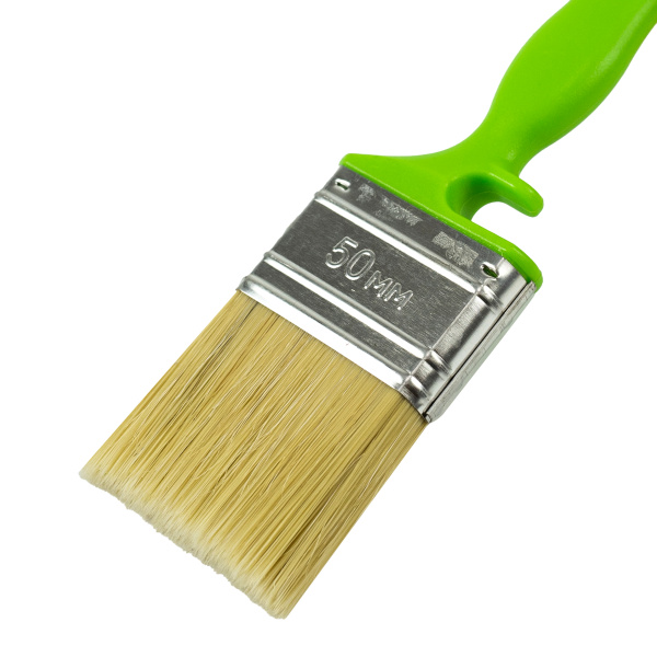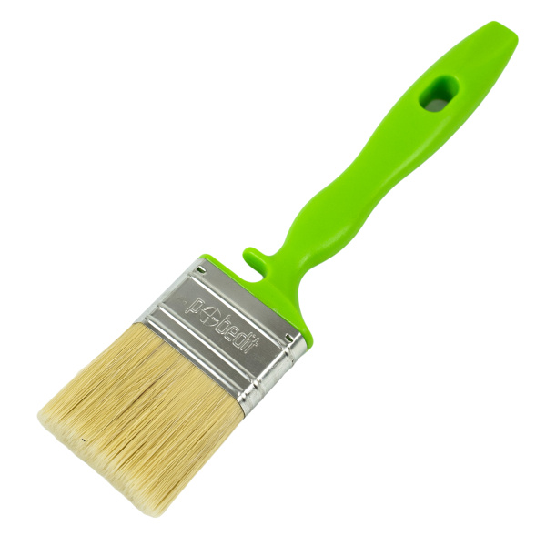 Высококачественная натуральная щетина. Специальный крепеж на банку краски.Клинья и клеевой рецепт фиксирует щетину.