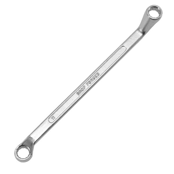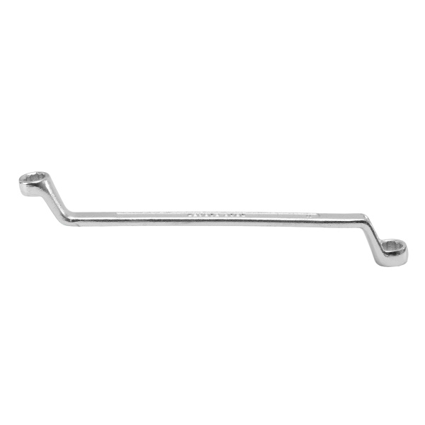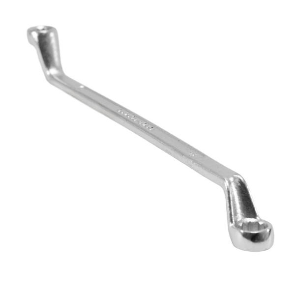 Упрочненная углеродистая сталь c хромированным покрытием, твёрдостью 45 HRс. Предназначен для закручивания и откручивания гаек, болтов и т.д. Ключ имеет 2 кольцевых зева разного размера.