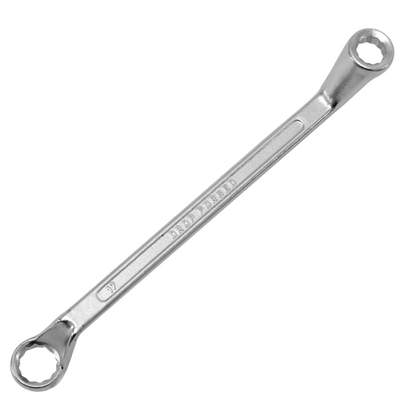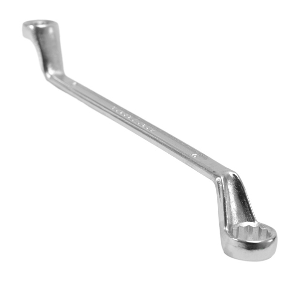 Упрочненная углеродистая сталь c хромированным покрытием, твёрдостью 45 HRс. Предназначен для закручивания и откручивания гаек, болтов и т.д. Ключ имеет 2 кольцевых зева разного размера.