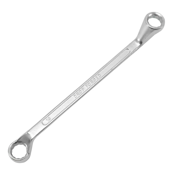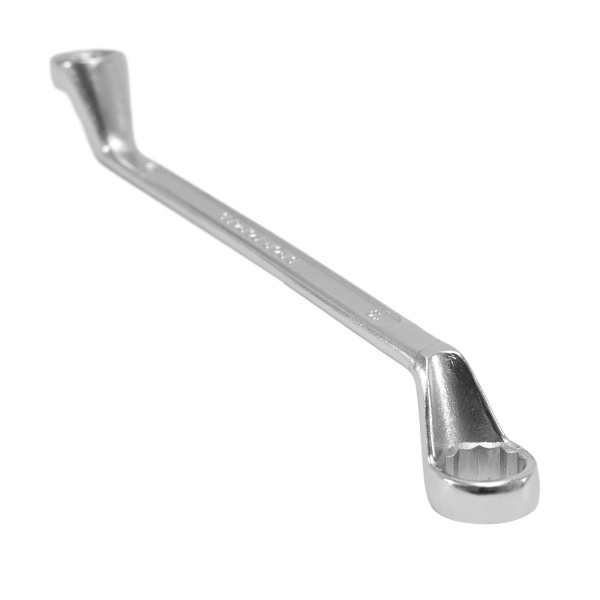 Упрочненная углеродистая сталь c хромированным покрытием, твёрдостью 45 HRс. Предназначен для закручивания и откручивания гаек, болтов и т.д. Ключ имеет 2 кольцевых зева разного размера.