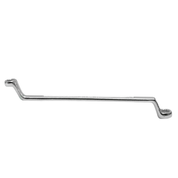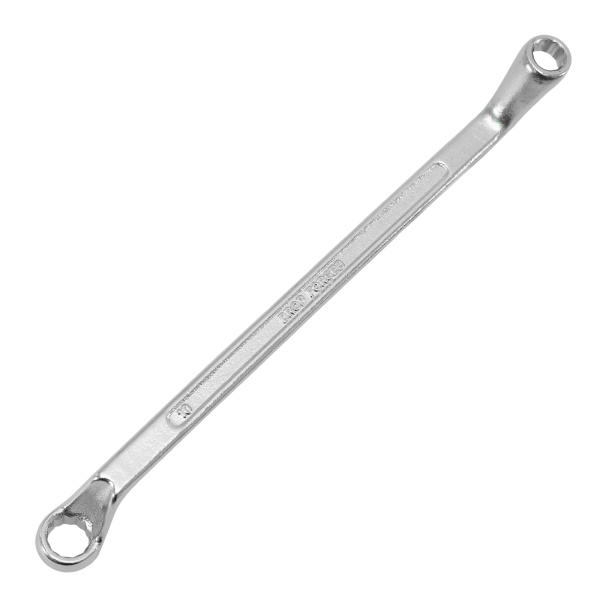 Упрочненная углеродистая сталь c хромированным покрытием, твёрдостью 45 HRс. Предназначен для закручивания и откручивания гаек, болтов и т.д. Ключ имеет 2 кольцевых зева разного размера.