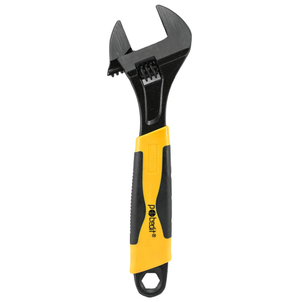 Изготовлен из высокоуглеродистой стали с фосфатированным покрытием. Тонкие губки и увеличенный зев для удобства работы. Двухкомпонентная рукоятка.
