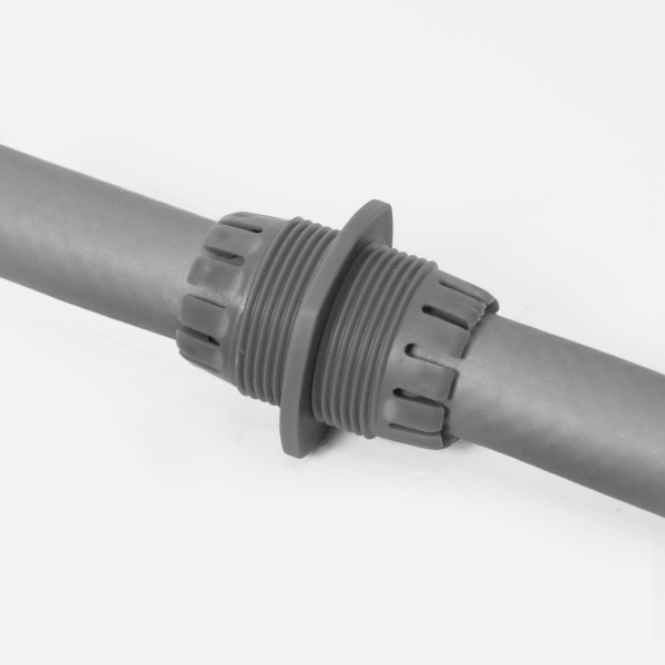 Из АБС-пластика.Применяется для быстрого и надежного соединения (удлинения) двух шлангов одинакового диаметра.