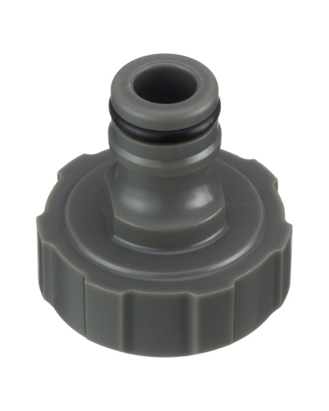 Из АБС-пластика. Выступает в роли переходника между вопроводной трубой (краном) с внешней резьбой и соединителем, в котором есть вход для штуцера 5/8.
