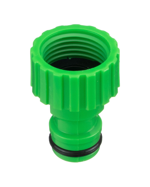 Из АБС-пластика. Выступает в роли переходника между водопроводной трубой или краном с внешней резьбой и соединителем, в котором есть вход для штуцера 5/8.
