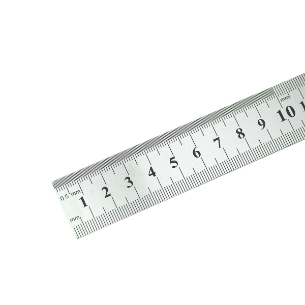 Изготовлена из нержавеющей стали. 2-сторонняя метрическая шкала выполнена методом травления. Цена деления 1мм. Для измерения и разметки линейных размеров.