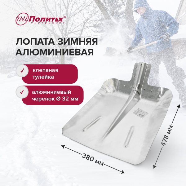 Изготовлена из алюминия, применяется для уборки снега. Под черенок 32 мм. Клепаная тулейка