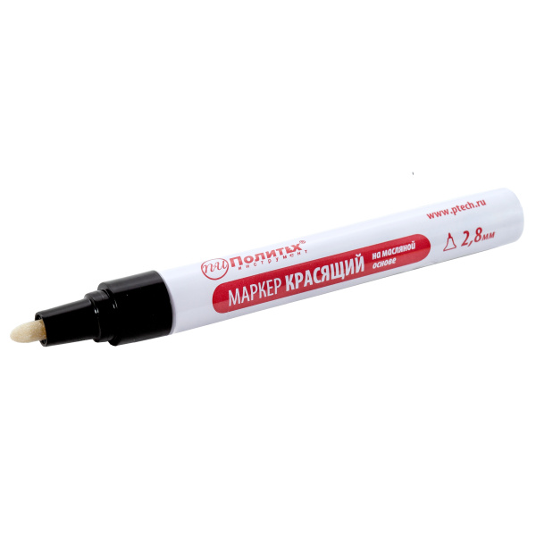 С жидким красящим составом. Применяется для нанесения разметки на большинство материалов (картон, металл, пластик, стекло и т.д.)