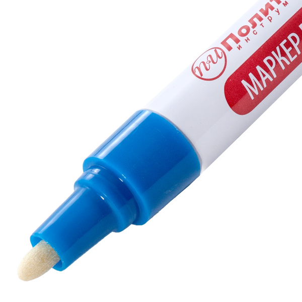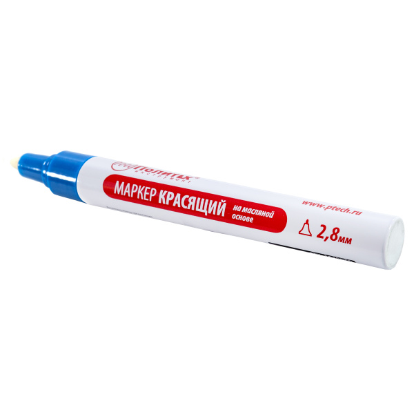 С жидким красящим составом. Применяется для нанесения разметки на большинство материалов (картон, металл, пластик, стекло и т.д.)
