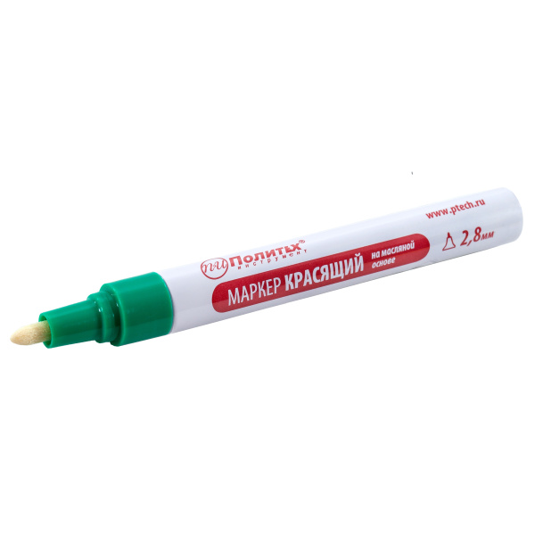 С жидким красящим составом. Применяется для нанесения разметки на большинство материалов (картон, металл, пластик, стекло и т.д.)