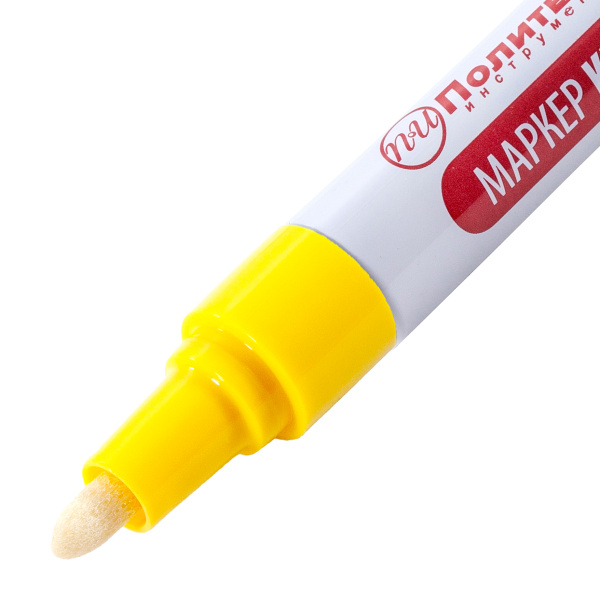 С жидким красящим составом. Применяется для нанесения разметки на большинство материалов (картон, металл, пластик, стекло и т.д.)