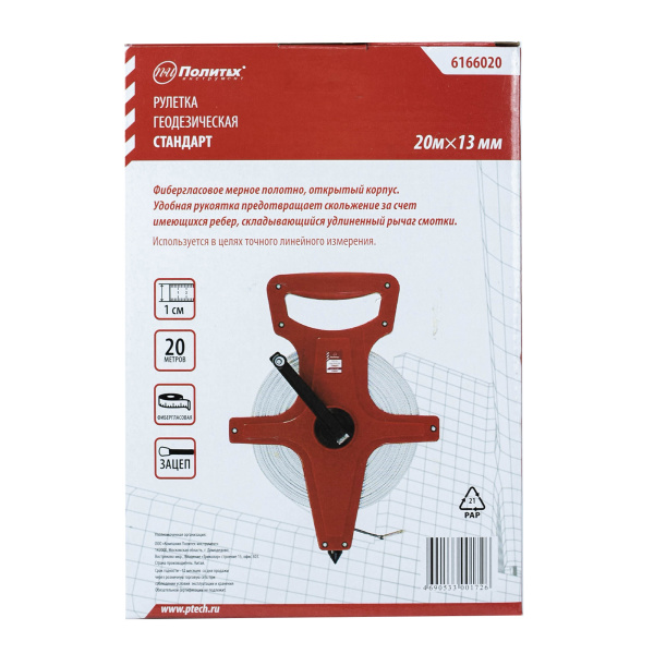 Рулетка геодез. Стандарт, 20м*13мм фиберглас.лента