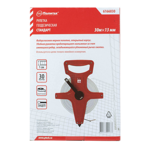 Рулетка геодез. Стандарт, 30м*13мм фиберглас.лента