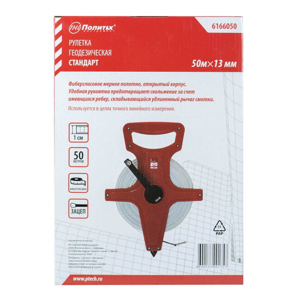 Рулетка геодез. Стандарт, 50м*13мм фиберглас.лента