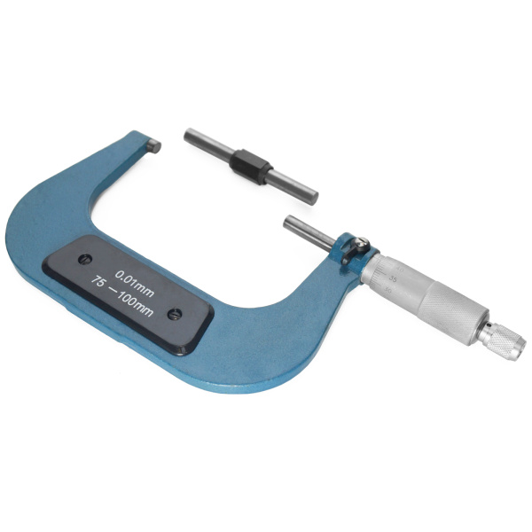 Инструментальная сталь. Имеет форму скобы. Основной рабочий элемент микрометрическая головка. Предназначен для точных измерений.