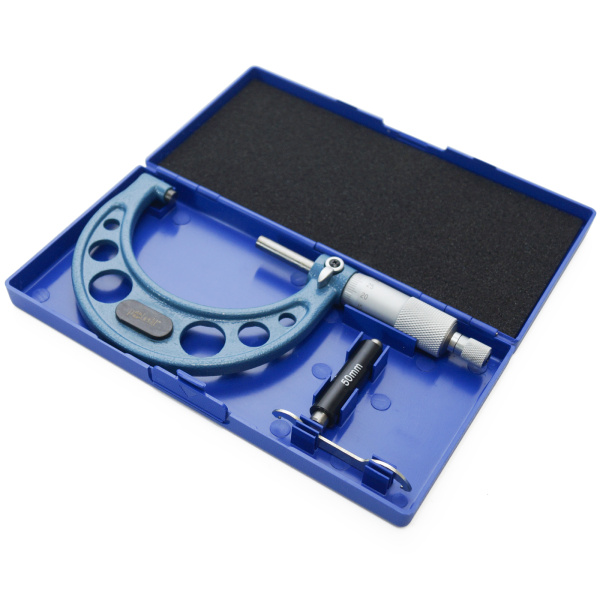 Инструментальная сталь. Имеет форму скобы. Основной рабочий элемент микрометрическая головка. Предназначен для точных измерений.