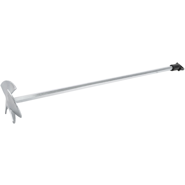 Изготовлен из оцинкованной стали. Стержень имеет шестигранную форму. Предназначен для смешивания красок и прочих растворов и смесей при помощи ручного и электроинструмента.