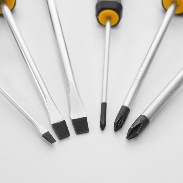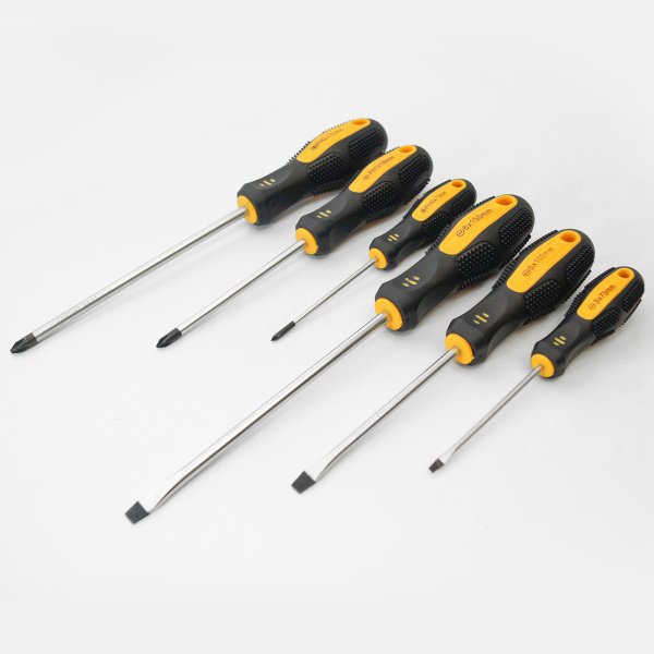 Из хром-ванадиевой стали. Антискользящая двухкомпонентная рукоятка. Отверстие на ручке для удобного хранения. PH0*75, PH1*100, PH2*150, SL3*75, SL5*100, SL6*150
