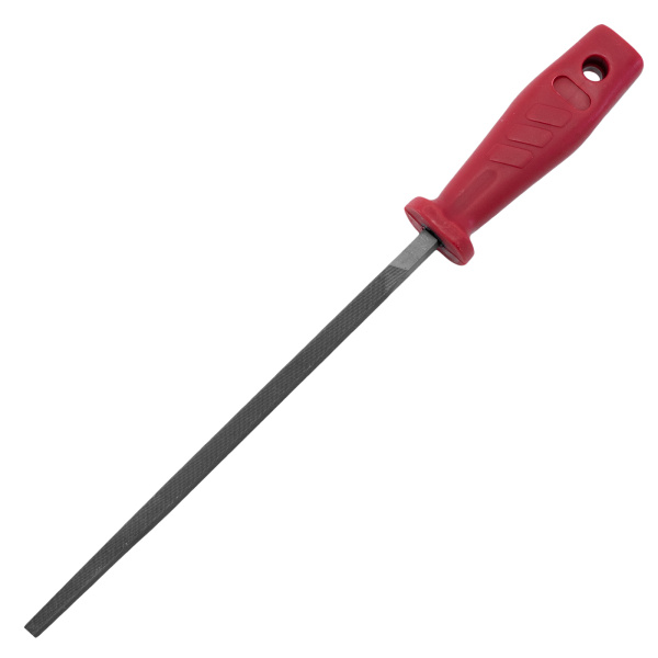 Изготовлен из инструментальной стали твёрдостью 60 HRc. Применяется для чистки контактов, снятия заусенцев, обработки различных поверхностей. Эргономичная пластиковая рукоятка.