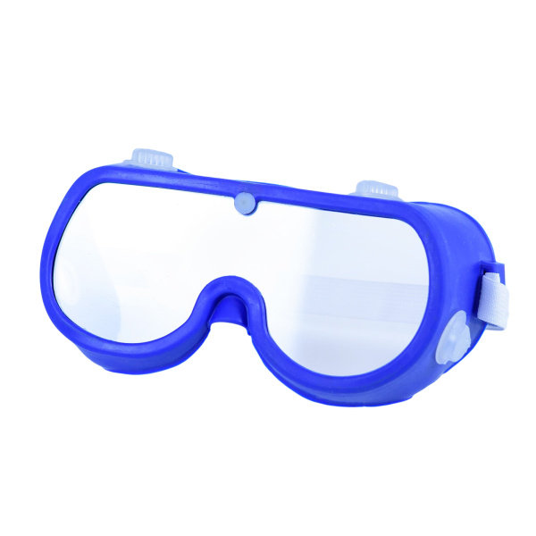 Очки с поликарбонатной синей линзой, толщиной 2 мм и клапанной вентиляцией для достижения эффекта антизапотевания.