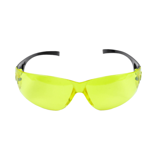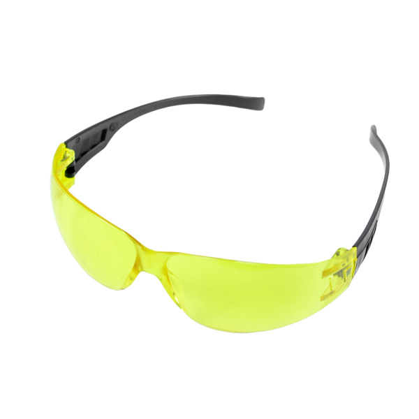 Желтые поликарбонатные линзы для работ при недостаточном освещении, спортивный дизайн для удобства носки, не работать с распылителями.