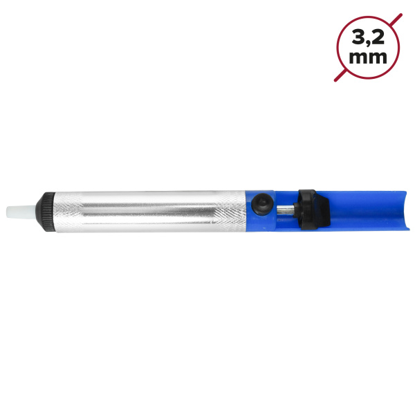 Алюминиевый корпус. Забор производится антистатическим наконечником, изготовленным из высокотемпературного тефлона. Предназначен для удаления излишков или остатков припоя и флюса.