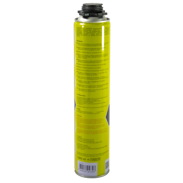 Профессиональная полиуретановая монтажная пена для заделки швов, зазоров и технологических пустот, имеет превосходную адгезию и великолепные тепло- и звукоизолирующие свойства. Температура использования от -10°C до+30°C. Выход пены: до 65 л.