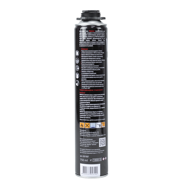 Профессиональная полиуретановая монтажная пена, для установки и фиксации оконных и дверных блоков. Для тепло- и звукоизоляции помещений.Температура использования от -10°C до+30°C. Выход пены: до 60 л (в зависимости от условий окружающей среды)
