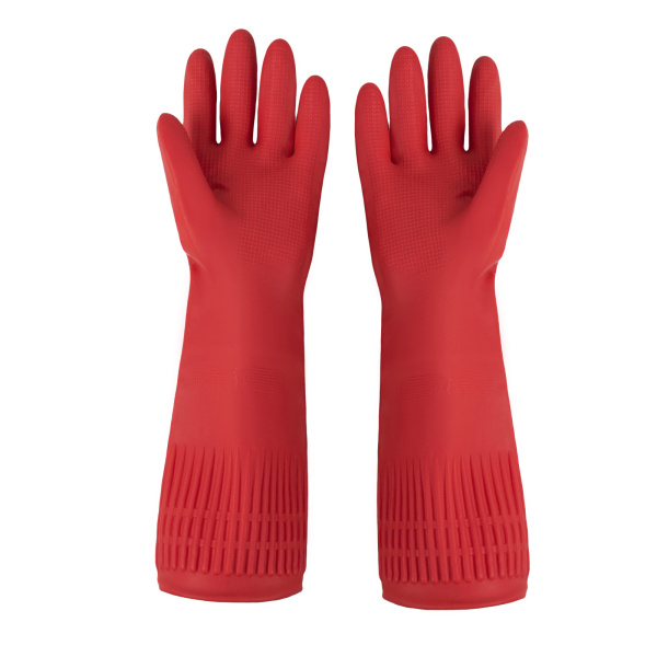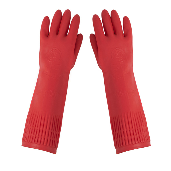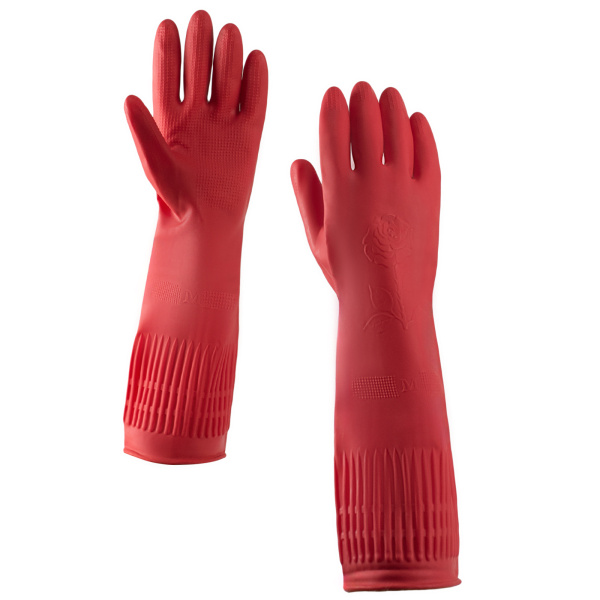 Перчатки хозяйственные латексные красные удлин манжета, разм.M