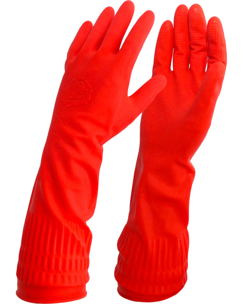 Основа: Латекс 100%. Удлиненные хозяйственные перчатки для дополнительной защиты рук. Вес 90г.